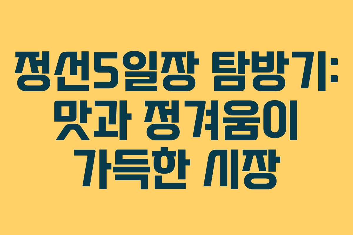 정선5일장에서 꼭 방문해야 할 장소들을 정리해 보았습니다. 이곳에서의 경험을 통해 정선의 매력을 다시 한 번 느낄 수 있었습니다.