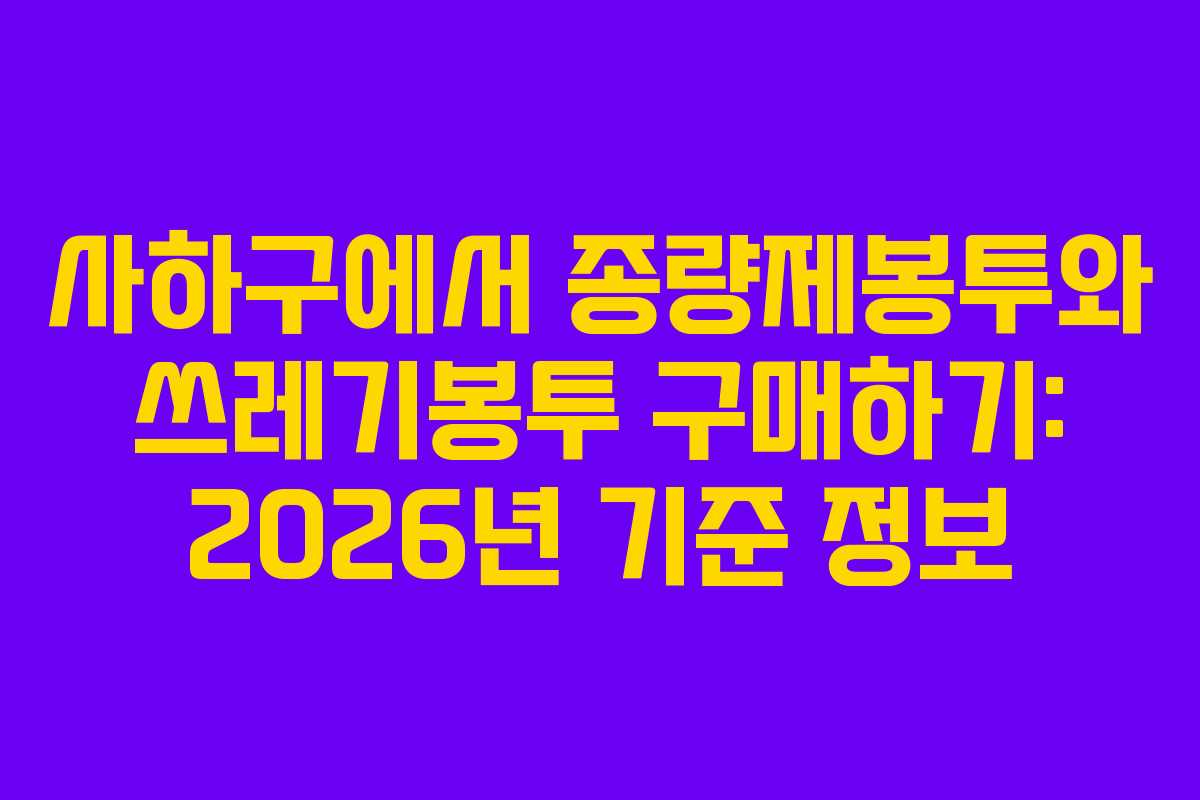 사하구에서 종량제봉투와 쓰레기봉투를 구입하는 방법에 대한 정보를 제공하는 글입니다. 이 글에서는 2026년 기준으로 사하구 내에서 봉투를 구매할 수 있는 장소와 그 특징을 정리하였습니다.