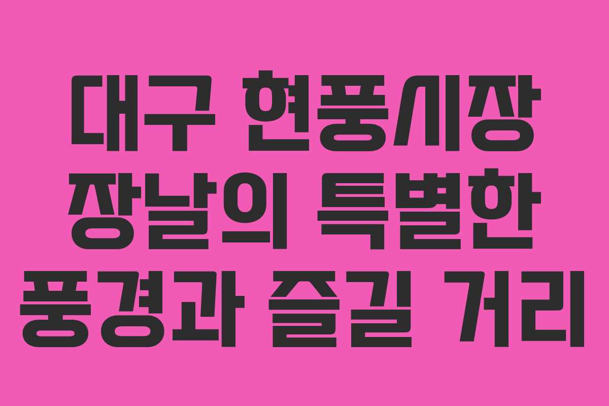 대구 현풍시장은 대구광역시 달성군 현풍읍에 위치한 전통적인 재래시장입니다. 이곳은 매달 5, 10, 15, 20, 25, 30일에 열리는 5일장으로, 평소에는 한산하지만 장날이 되면 사람들로 북적이는 생동감 넘치는 장소입니다. 오늘은 현풍시장에서 장날을 맞아 어떤 특별한 풍경과 즐길 거리가 있는지를 살펴보겠습니다.