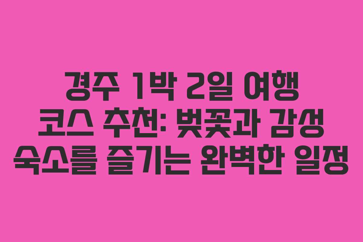 경주는 벚꽃 시즌에 맞춰 특별한 매력을 발산하는 곳이다. 이번 글에서는 감성 숙소와 맛집, 산책로 그리고 황리단길의 핫플레이스를 모두 포함한 1박 2일 여행 코스를 소개한다. 친구, 커플, 가족 모두가 즐길 수 있는 일정으로, 경주에서의 기억을 한층 더 특별하게 만들어 줄 것이다.