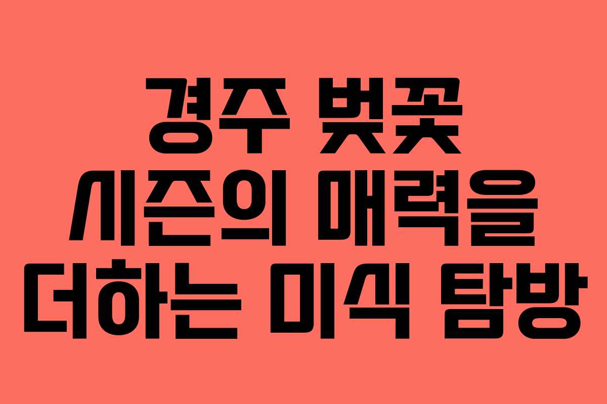 경주는 벚꽃뿐만 아니라 다양한 미식 경험으로도 매력적인 도시입니다. 경주의 봄 향기를 느끼며 벚꽃 구경을 하고, 소개한 맛집에서 따뜻한 한 끼와 달콤한 디저트를 즐겨보세요. 벚꽃 시즌의 인기 있는 장소는 사전 예약 혹은 오픈 시간에 맞춰 방문하는 것이 꿀팁입니다.