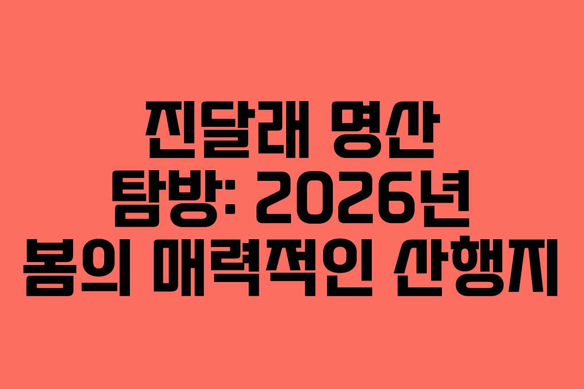 봄철이 다가오면 진달래가 만개하는 아름다운 경관을 즐기기 위해 많은 이들이 산을 찾습니다. 특히 2026년에는 진달래를 만끽할 수 있는 다양한 명산들이 있습니다. 이번 포스팅에서는 진달래가 특히 유명한 산들을 소개하고, 해당 산행지에서 즐길 수 있는 축제와 행사에 대해 자세히 알아보겠습니다.