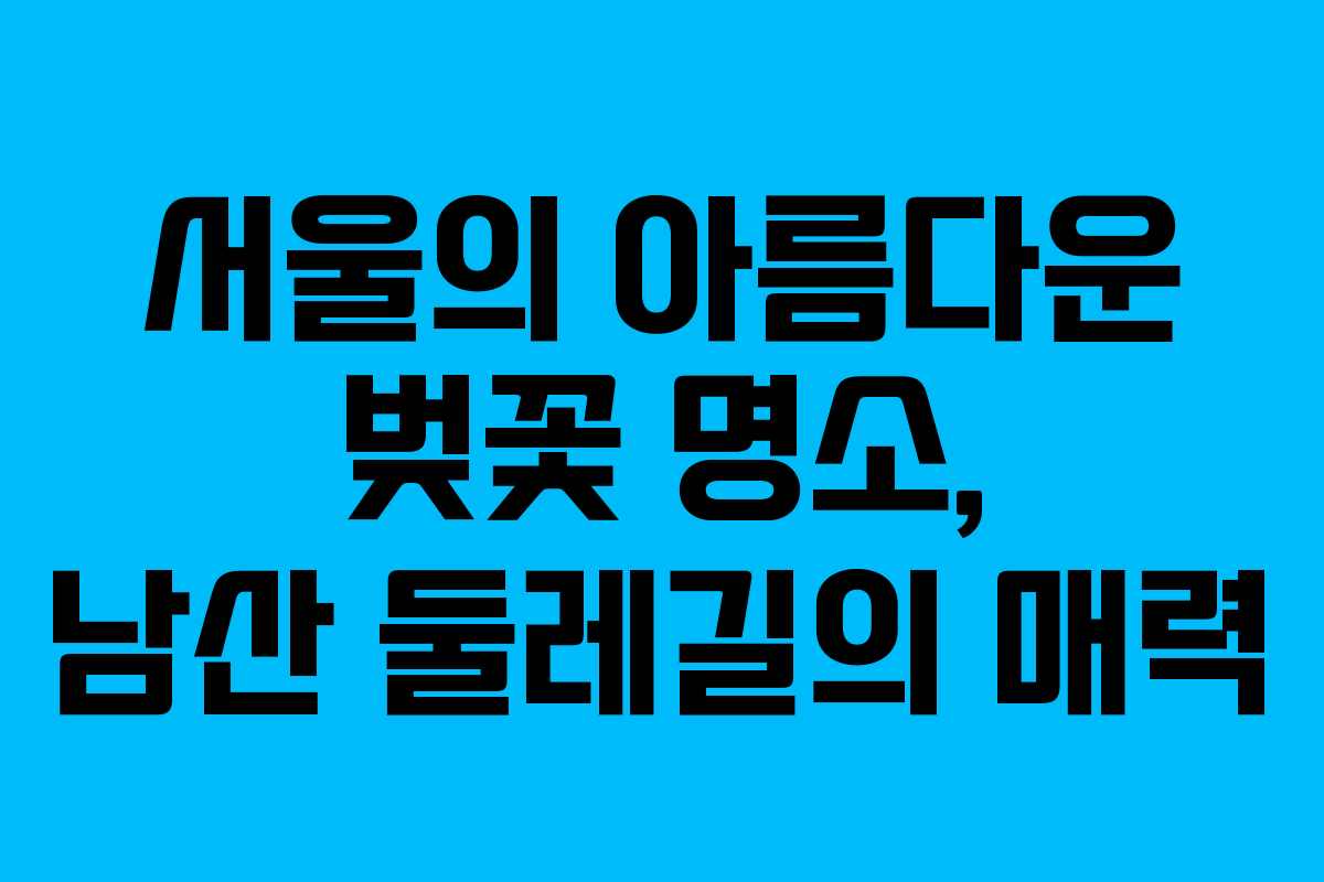 서울의 벚꽃 시즌은 매년 많은 이들에게 잊지 못할 기억을 선사합니다. 특히 남산 둘레길은 그중에서도 특별한 장소로, 벚꽃을 감상하며 걷기 좋은 공간으로 알려져 있습니다. 이곳은 남산의 자연과 조화를 이루며, 다양한 경관을 즐길 수 있는 매력을 지니고 있습니다. 2026년 기준으로 남산 둘레길은 벚꽃 시즌에 방문하기에 좋은 장소로 여전히 많은 이들의 사랑을 받고 있습니다.