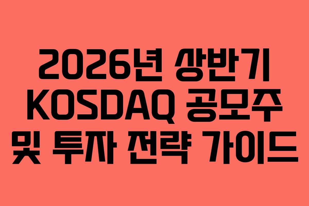 2026년 상반기 KOSDAQ 공모주 및 투자 전략 가이드