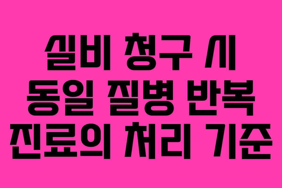 동일 질환으로 반복 치료를 받는 경우 실비 청구가 어떻게 처리되는지에 대해 알아보는 것은 매우 중요합니다. 반복 진료를 받는 환자들이 자주 궁금해하는 사항 중 하나는, 이러한 진료가 보험금 청구에 어떤 영향을 미치는지입니다. 이번 글에서는 실비 청구 시 동일 질병으로 반복 진료를 받을 때의 보장 기준과 주의사항을 살펴보겠습니다.