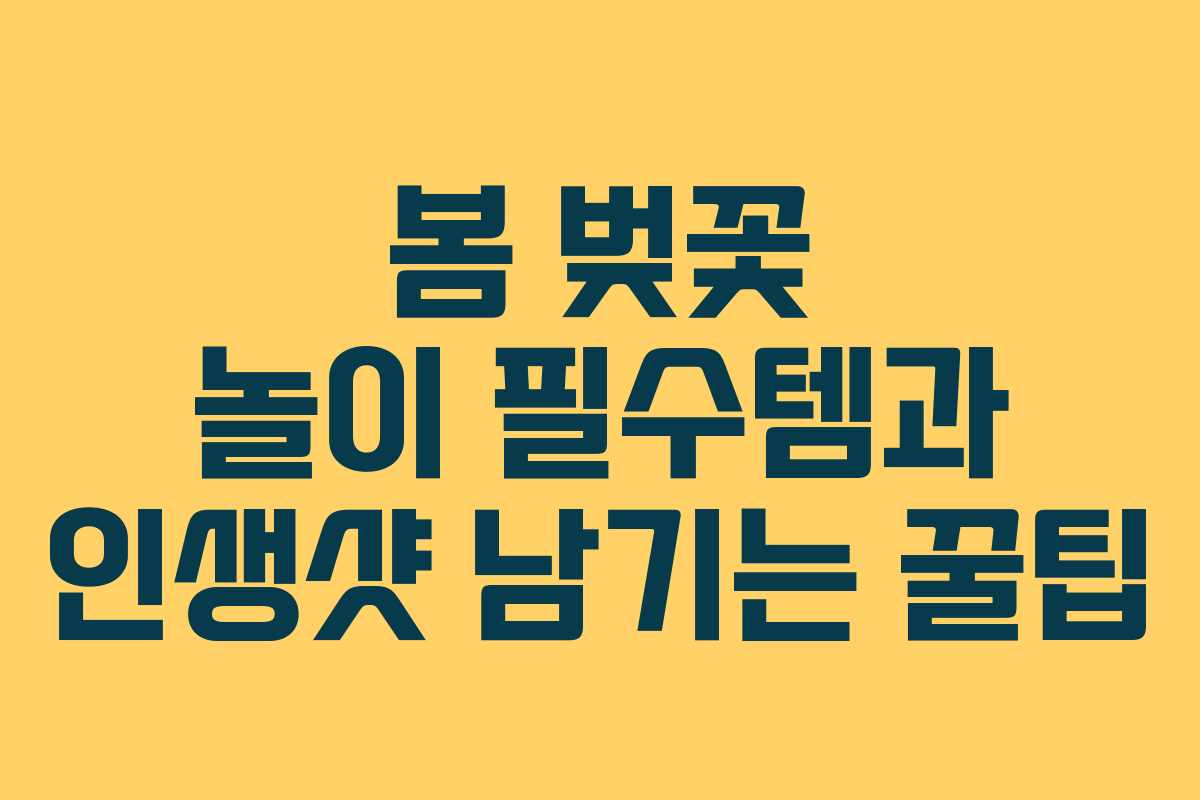 봄이 오면 많은 이들이 기다리는 건 벚꽃입니다. 벚꽃을 배경으로 소중한 순간을 사진으로 남기는 것은 특별한 경험이죠. 이 글에서는 벚꽃 놀이를 떠나기 전에 준비해야 할 필수 아이템과 인생샷을 남기는 방법을 소개하겠습니다.