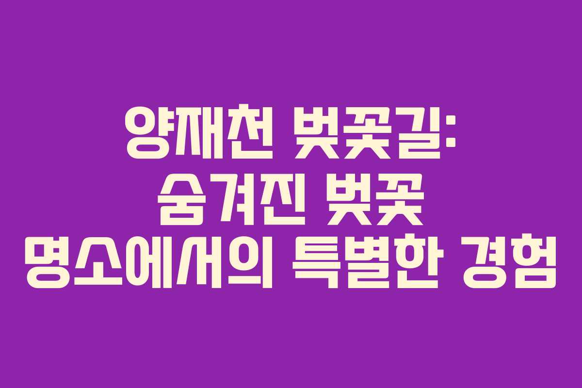 - 양재천 벚꽃길의 매력: 숨겨진 포토존과 산책로