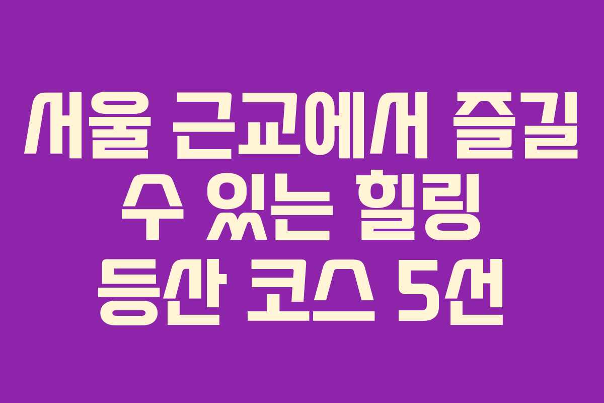 서울 근교의 힐링 등산 여행을 떠나보세요. 이번 주말에는 가까운 서울 근교에서 자연을 만끽하며 몸과 마음을 힐링하는 시간을 가져보시기 바랍니다. 다양한 코스를 활용해 초보자부터 가족 단위 여행객까지 모두가 즐길 수 있는 기회를 만들어보세요.