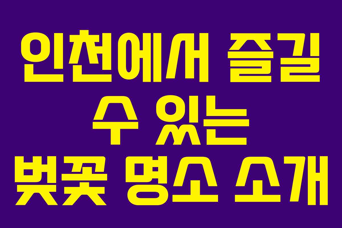 벚꽃 시즌이 다가오면 많은 사람들이 아름다운 벚꽃을 보기 위해 발걸음을 옮깁니다. 특히 인천은 다양한 벚꽃 명소가 있어 많은 이들에게 사랑받고 있습니다. 벚꽃이 만개하는 시기가 짧기 때문에, 꼭 적절한 시기에 미리 계획을 세우는 것이 중요합니다. 이번 글에서는 인천의 벚꽃 명소 4곳을 소개하겠습니다. 2026년 기준으로 벚꽃 시즌에 맞춰 방문할 수 있는 곳들로, 여러분의 벚꽃 구경에 도움이 될 것입니다.