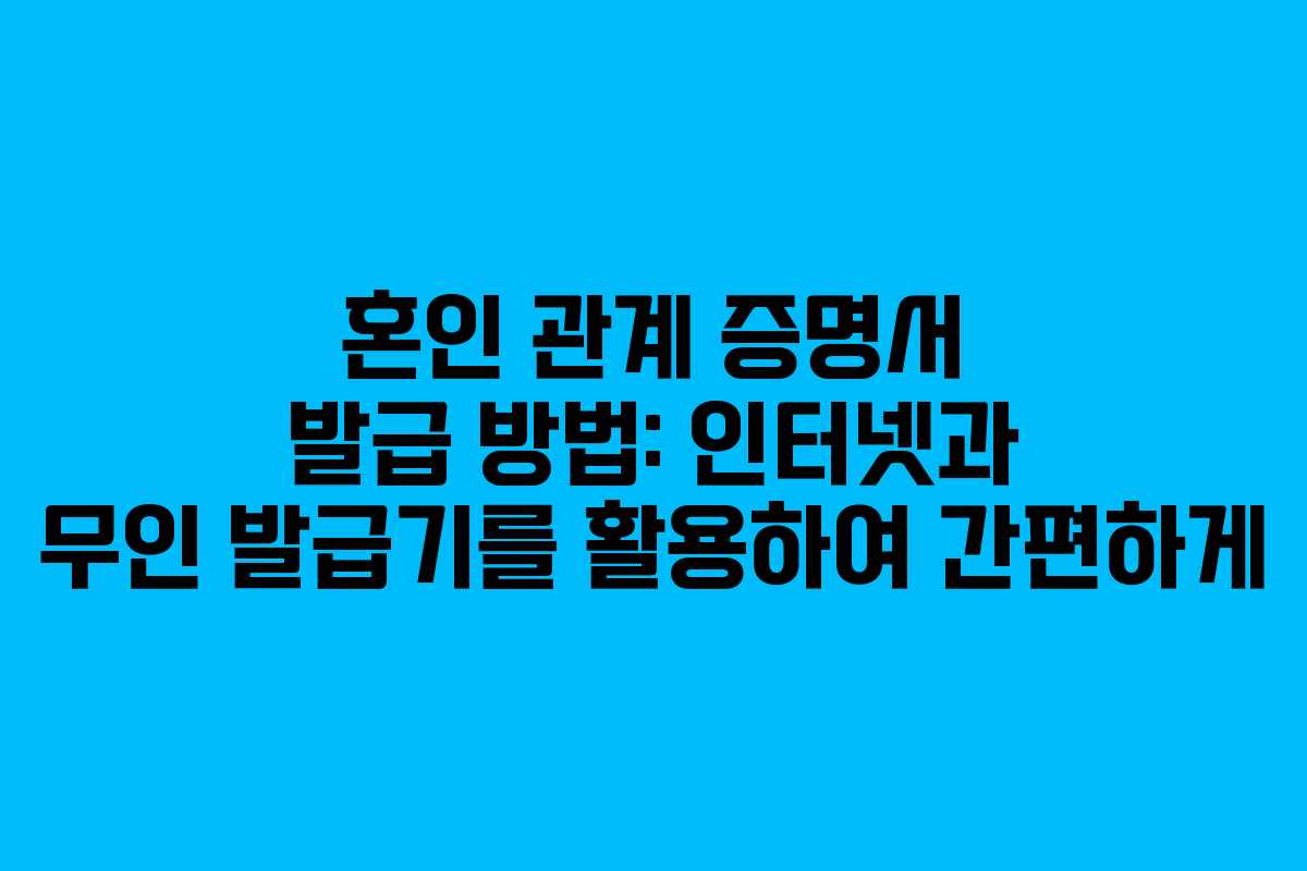 무인 발급기는 전국 여러 곳에 설치되어 있어, 언제든지 간편하게 혼인 관계 증명서를 발급받을 수 있습니다. 이 방법은 특히 바쁜 일정을 가진 이들에게 유용할 수 있습니다.