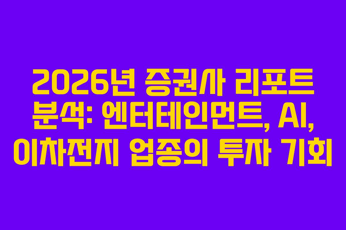 2026년 증권사 리포트 분석: 엔터테인먼트, AI, 이차전지 업종의 투자 기회
