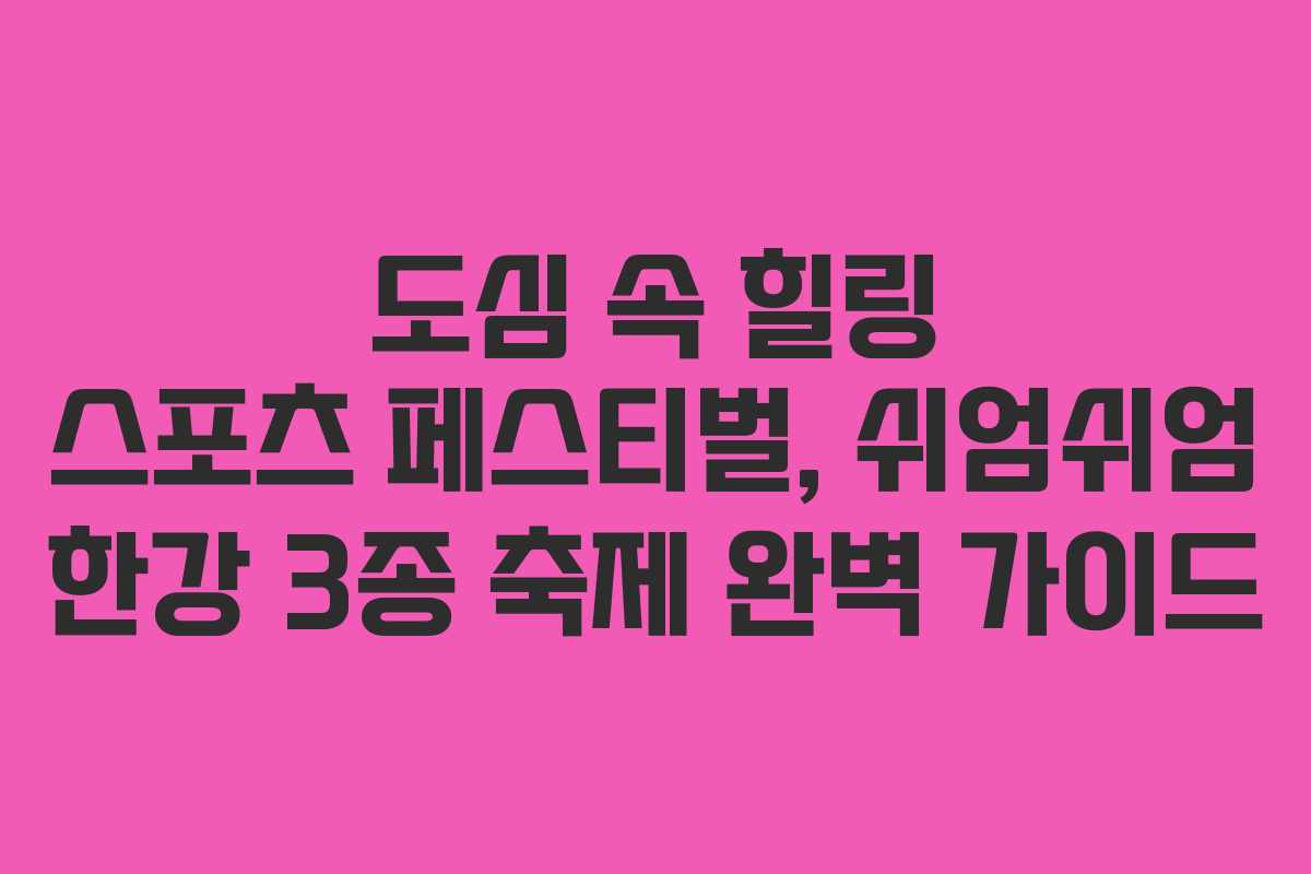2026년 5월 30일부터 6월 1일까지 뚝섬한강공원에서 열리는 <쉬엄쉬엄 한강 3종 축제>에 대한 모든 정보는 공식 홈페이지를 통해 확인할 수 있습니다. 인기 있는 축제이니 서두르셔서 사전 신청을 완료하시기 바랍니다. 도심 속 특별한 힐링 스포츠 페스티벌이 여러분을 기다리고 있습니다.
