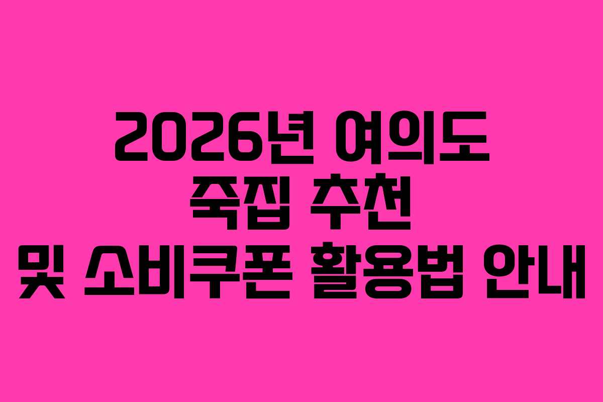 2026년 여의도 죽집과 소비쿠폰 활용 요약