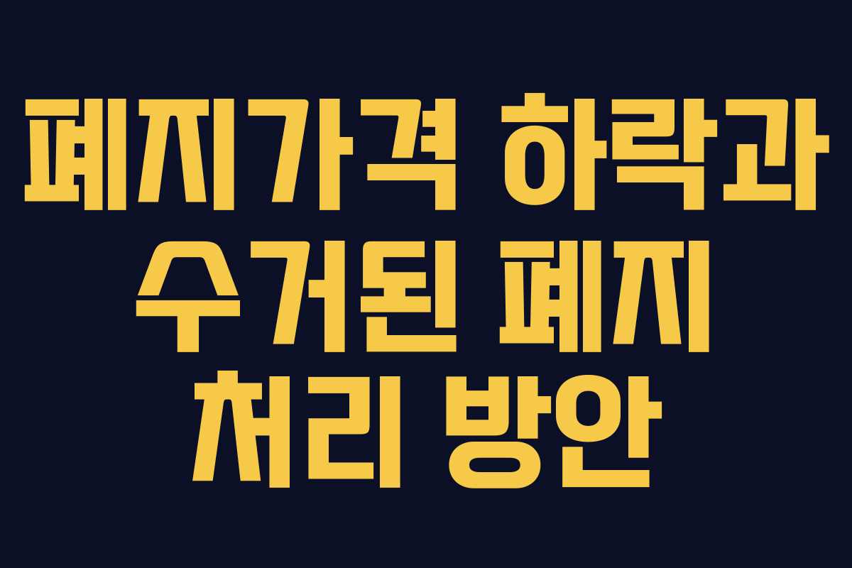 폐지가격 하락으로 인해 많은 사람들이 어려움을 겪고 있는 만큼, 이를 극복하기 위한 몇 가지 방안을 제시합니다.