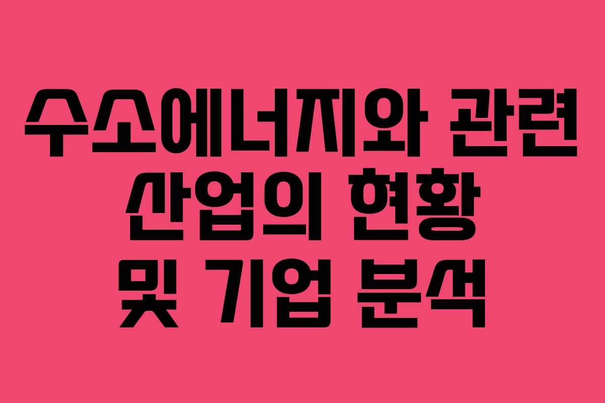 수소에너지와 관련 산업의 현황 및 기업 분석