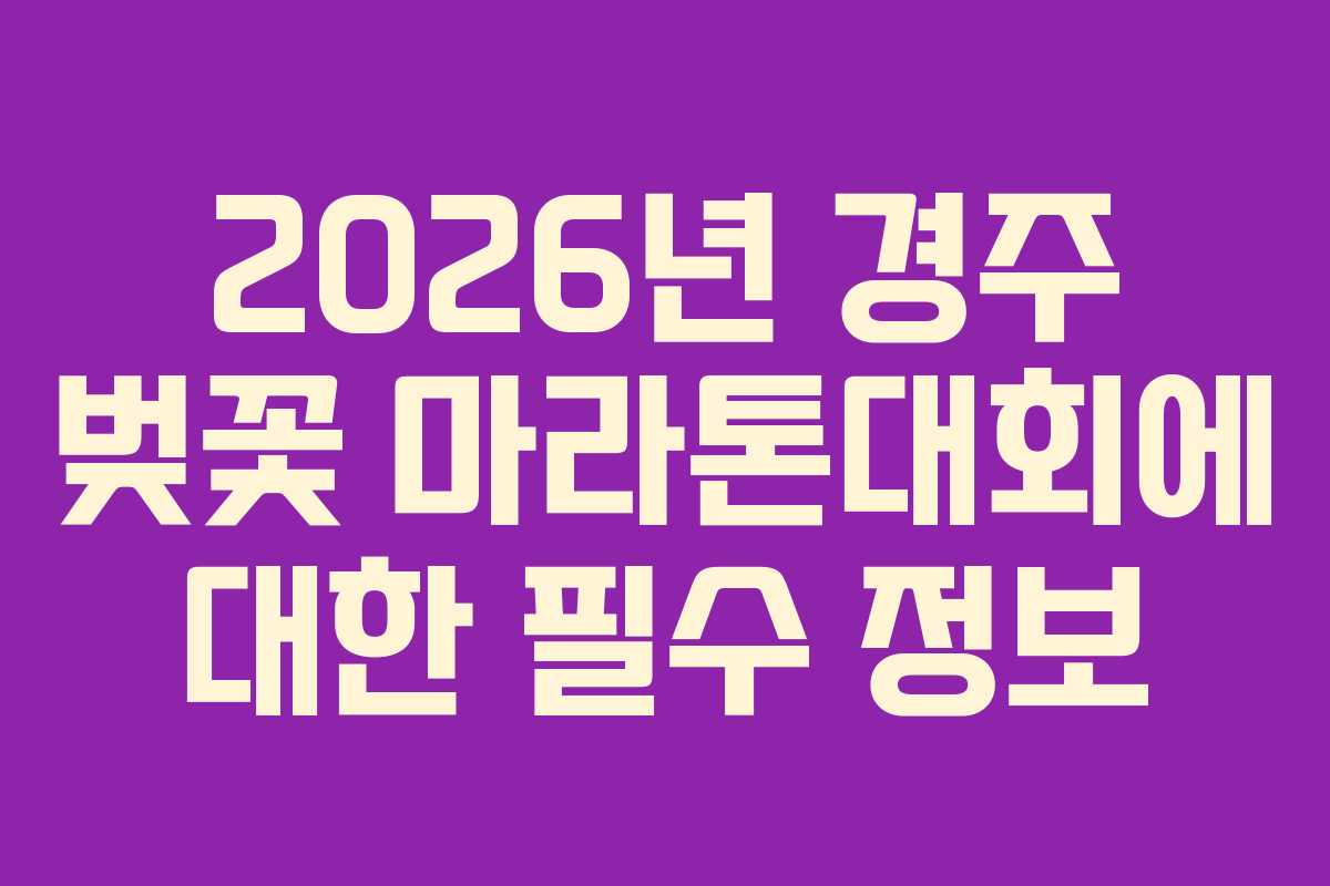 2026년 경주에서 열리는 벚꽃 마라톤대회는 많은 참가자들이 기다리는 중요한 행사입니다. 이 대회는 매년 수많은 러너들이 참여하여 아름다운 벚꽃을 배경으로 경주를 즐기는 기회가 됩니다. 이 글에서는 대회에 대한 구체적인 정보와 함께, 참가를 위해 알아야 할 사항들을 소개합니다.