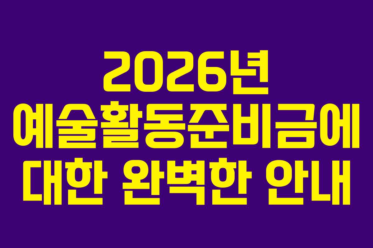 예술활동준비금은 예술인들이 경제적 부담을 덜고 창작을 지속할 수 있도록 돕기 위해 마련된 지원금입니다. 이를 통해 예술가들은 필요한 자원을 확보하고, 각자의 예술적 가치를 인정받을 수 있습니다. 2026년 기준으로 이 지원금을 받기 위해서는 예술활동증명을 완료해야 하며, 소득인정액 기준을 충족해야 합니다.