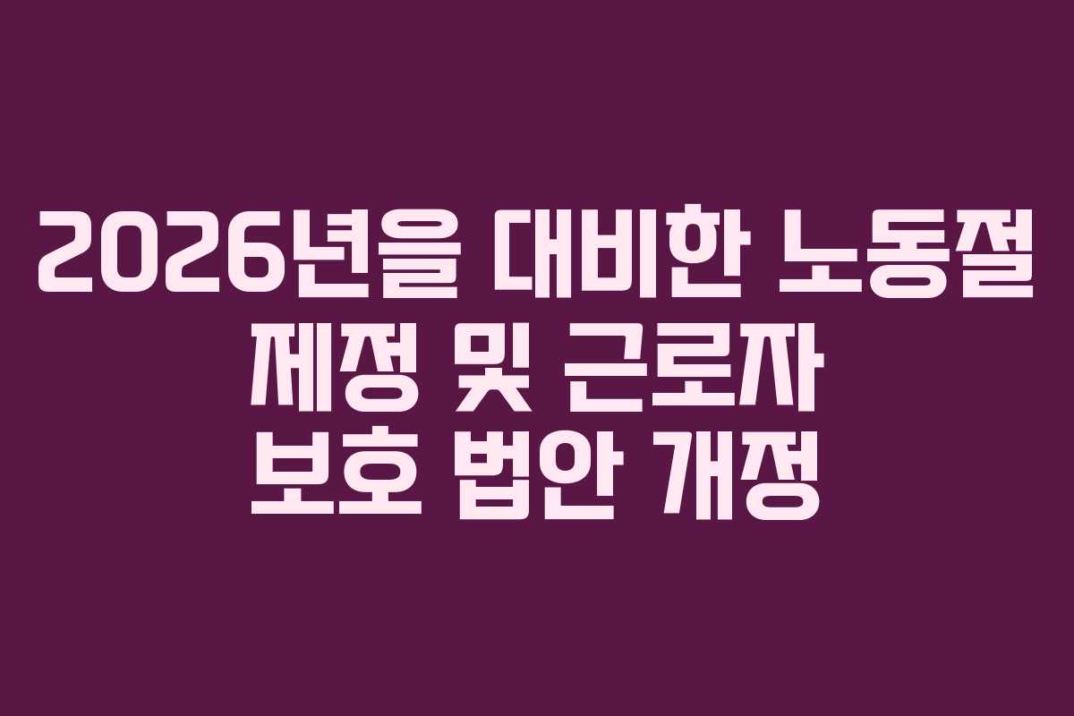2026년을 맞이하며 노동자의 권리와 가치를 인정받기 위한 법안들이 국회에서 통과되었습니다. 새롭게 제정된 노동절과 함께 근로자 보호를 강화하는 여러 법률이 함께 개정되어, 노동 환경의 질을 향상시키려는 노력이 지속되고 있습니다. 본 글에서는 이러한 법안의 주요 내용과 함께 구체적인 변화 사항을 살펴보겠습니다.