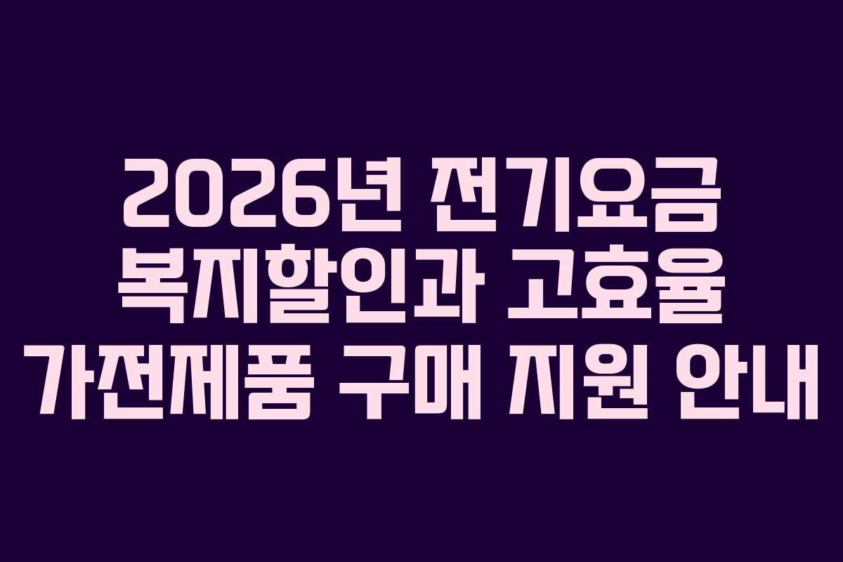 2026년에는 전기요금 복지할인 가구를 대상으로 한 고효율 가전제품 구매비용 지원 사업이 시행됩니다. 지원 대상은 다음과 같습니다:
