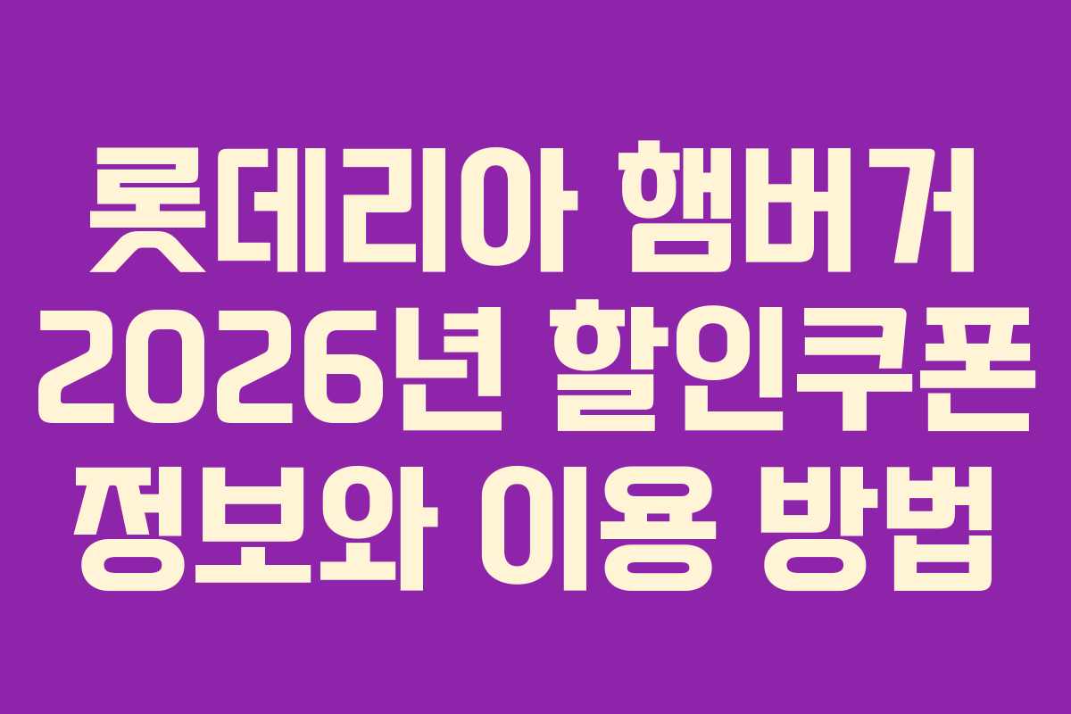 롯데리아 햄버거 2026년 할인쿠폰 정보와 이용 방법