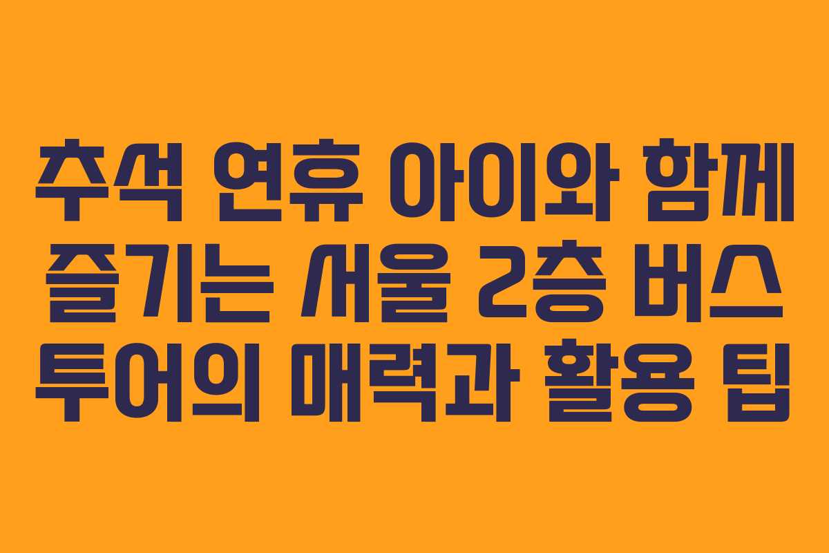 추석 연휴 아이와 함께 즐기는 서울 2층 버스 투어의 매력과 활용 팁