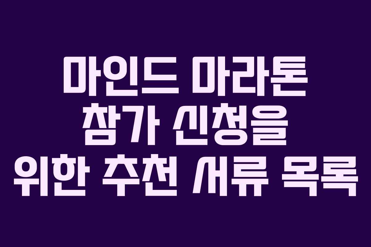 마인드 마라톤은 신체적 운동을 넘어서, 정신적인 훈련과 자기 개발을 목표로 합니다. 참가 신청 시 필요한 서류는 대회마다 조금씩 다를 수 있지만, 일반적으로 요구되는 서류 목록이 있습니다.