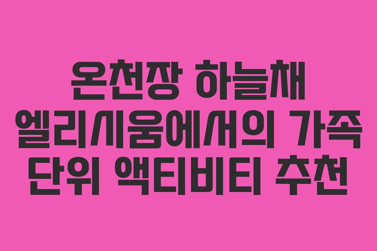 온천장 하늘채 엘리시움은 가족과 함께 즐거운 시간을 보낼 수 있는 최적의 장소입니다. 다양한 액티비티와 편리한 시설을 통해 소중한 추억을 만들어보세요.